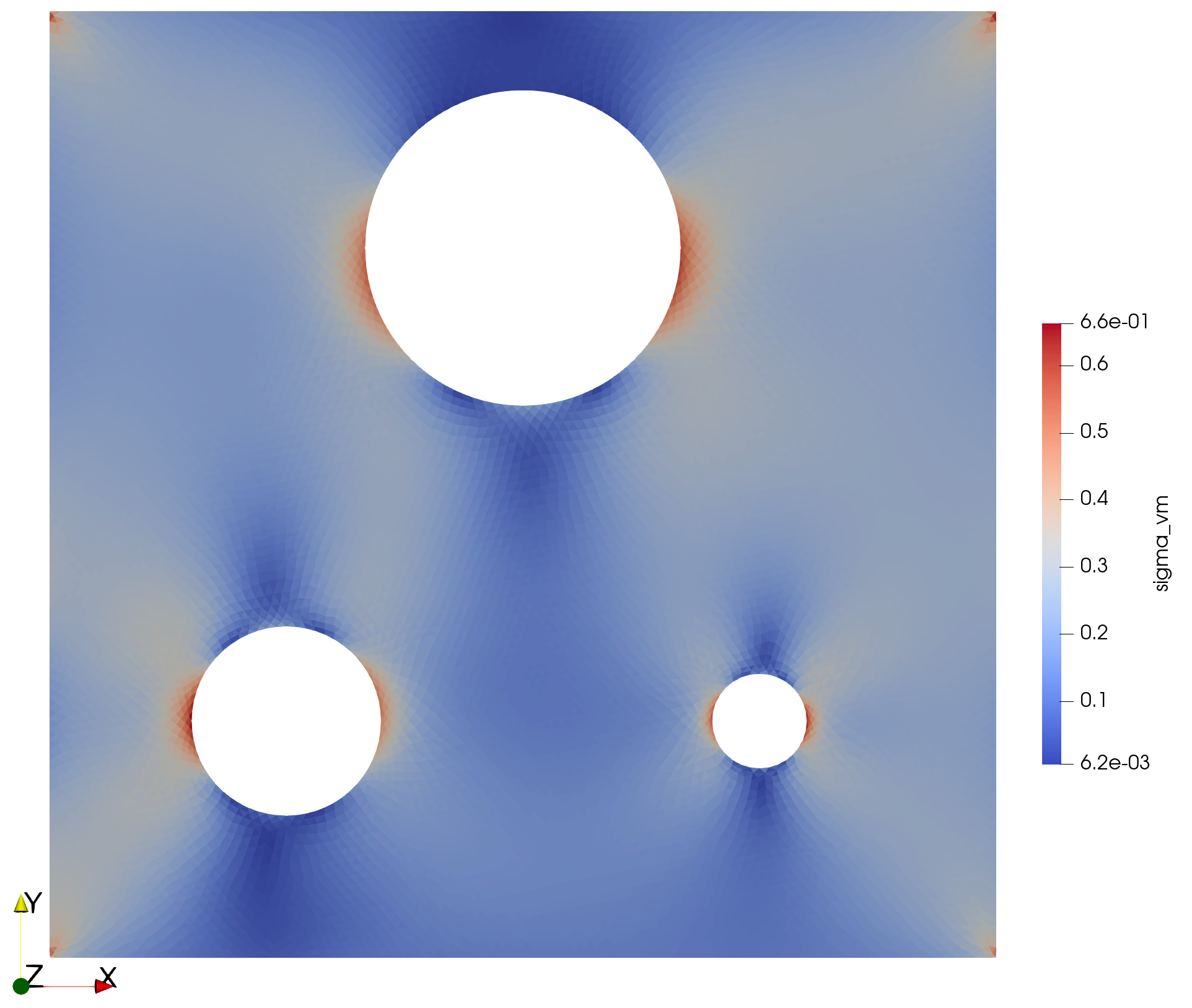Solving the mechanical problems amounts to finding the continuous displacement field minimising the potential energy \[E_p\left(\boldsymbol{u}\right) = \frac{1}{2} \int_{\Omega}\boldsymbol{E} : \mathbb{C} : \boldsymbol{E} ~\mathrm{d}\Omega- \int_{\partial \Omega_N}\boldsymbol{F}\cdot \boldsymbol{u} ~\mathrm{d}A- \int_{\Omega}\boldsymbol{f}\cdot\boldsymbol{u}~\mathrm{d}\Omega. \]